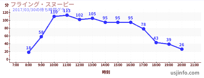 • フライング・スヌーピー$B$N(B2017年03月30日の待ち時間