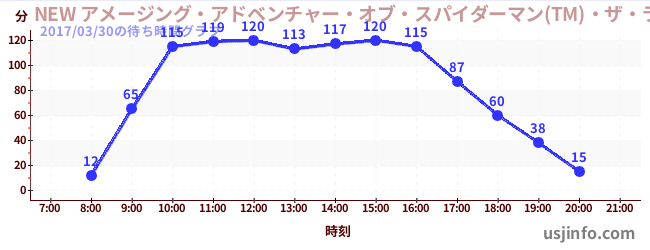 • NEW アメージング・アドベンチャー・オブ・スパイダーマン(TM)・ザ・ライド 4K3D$B$N(B2017年03月30日の待ち時間
