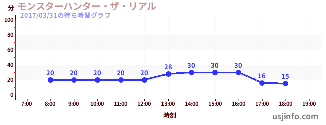 • モンスターハンター・ザ・リアル$B$N(B2017年03月31日の待ち時間