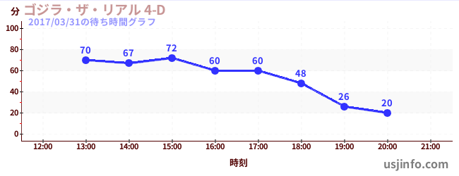 • ゴジラ・ザ・リアル 4-D$B$N(B2017年03月31日の待ち時間