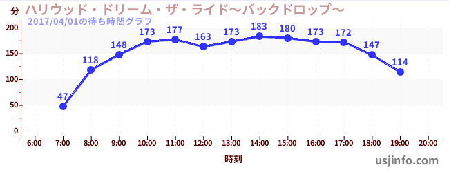 • ハリウッド・ドリーム・ザ・ライド〜バックドロップ〜$B$N(B2017年04月01日の待ち時間