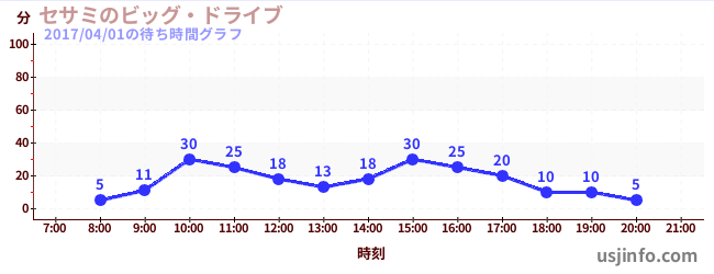 • セサミのビッグ・ドライブ$B$N(B2017年04月01日の待ち時間