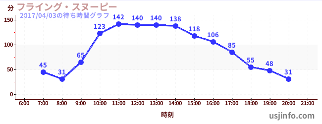 • フライング・スヌーピー$B$N(B2017年04月03日の待ち時間