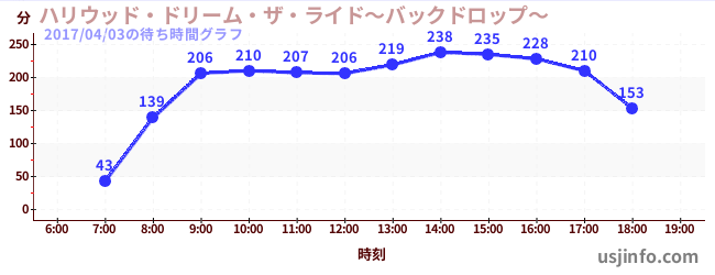 • ハリウッド・ドリーム・ザ・ライド〜バックドロップ〜$B$N(B2017年04月03日の待ち時間