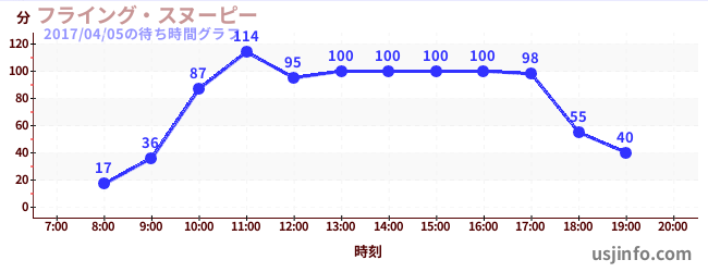 • フライング・スヌーピー$B$N(B2017年04月05日の待ち時間