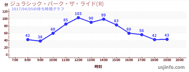 • ジュラシック・パーク・ザ・ライド(R)$B$N(B2017年04月05日の待ち時間
