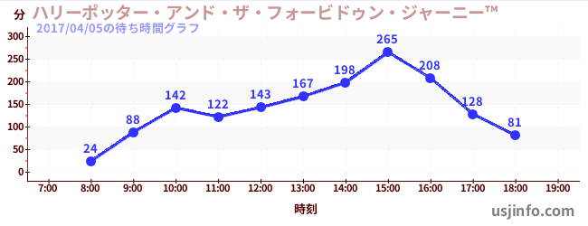 • ハリーポッター・アンド・ザ・フォービドゥン・ジャーニー™$B$N(B2017年04月05日の待ち時間