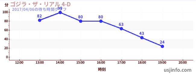 • ゴジラ・ザ・リアル 4-D$B$N(B2017年04月06日の待ち時間