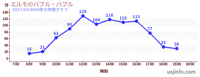 • エルモのバブル・バブル$B$N(B2017年04月06日の待ち時間