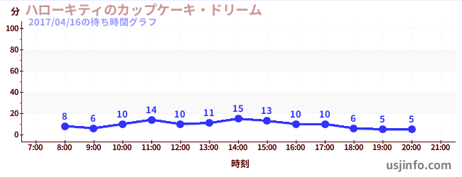 • ハローキティのカップケーキ・ドリーム$B$N(B2017年04月16日の待ち時間