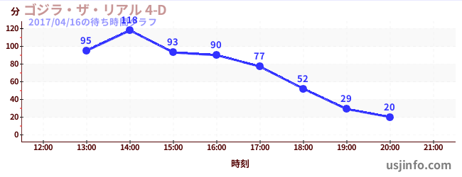 • ゴジラ・ザ・リアル 4-D$B$N(B2017年04月16日の待ち時間