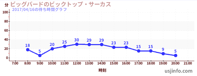 • ビッグバードのビックトップ・サーカス$B$N(B2017年04月16日の待ち時間