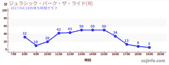 • ジュラシック・パーク・ザ・ライド(R)$B$N(B2017年04月19日の待ち時間