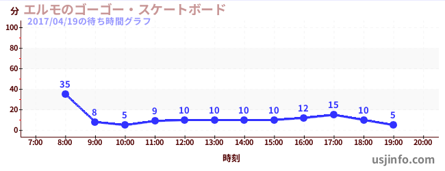 • エルモのゴーゴー・スケートボード$B$N(B2017年04月19日の待ち時間