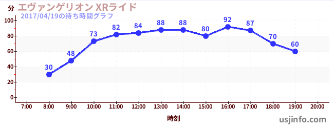 • エヴァンゲリオン XRライド$B$N(B2017年04月19日の待ち時間