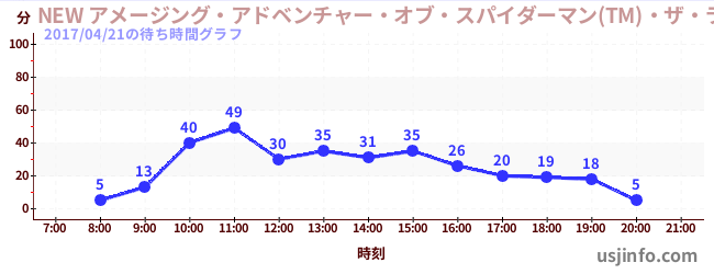• アメージング・アドベンチャー・オブ・スパイダーマン(TM)・ザ・ライド$B$N(B2017年04月21日の待ち時間