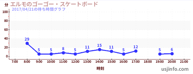 • エルモのゴーゴー・スケートボード$B$N(B2017年04月21日の待ち時間