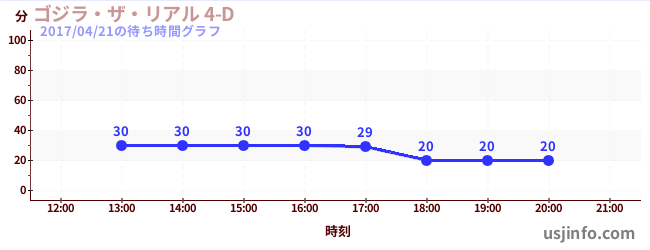 • ゴジラ・ザ・リアル 4-D$B$N(B2017年04月21日の待ち時間