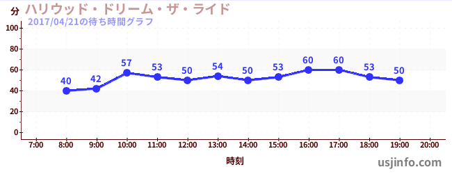 • ハリウッド・ドリーム・ザ・ライド$B$N(B2017年04月21日の待ち時間