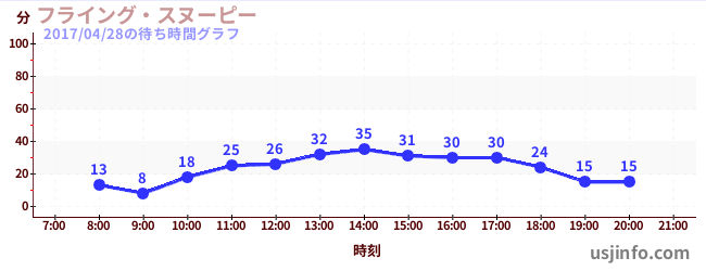 • フライング・スヌーピー$B$N(B2017年04月28日の待ち時間