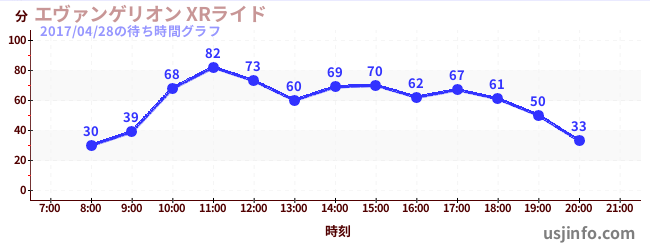 • エヴァンゲリオン XRライド$B$N(B2017年04月28日の待ち時間