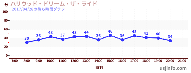 • ハリウッド・ドリーム・ザ・ライド〜バックドロップ〜$B$N(B2017年04月28日の待ち時間