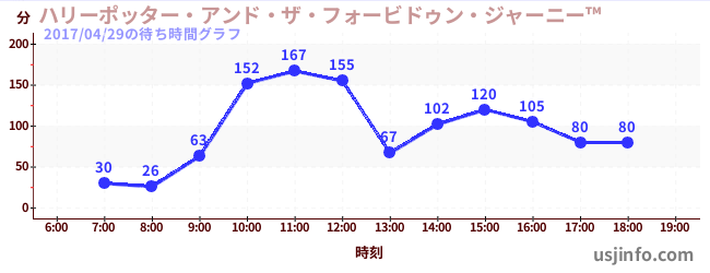 • ハリーポッター・アンド・ザ・フォービドゥン・ジャーニー™$B$N(B2017年04月29日の待ち時間