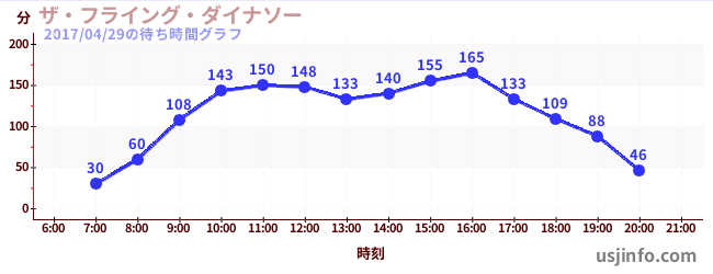 • ザ・フライング・ダイナソー$B$N(B2017年04月29日の待ち時間
