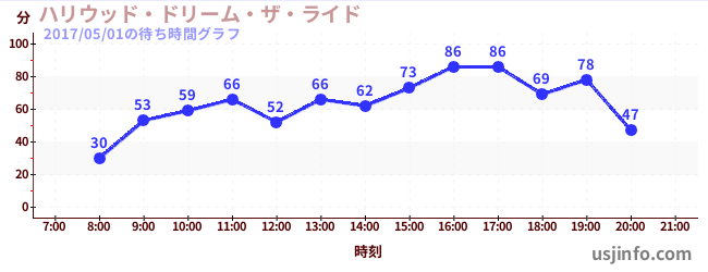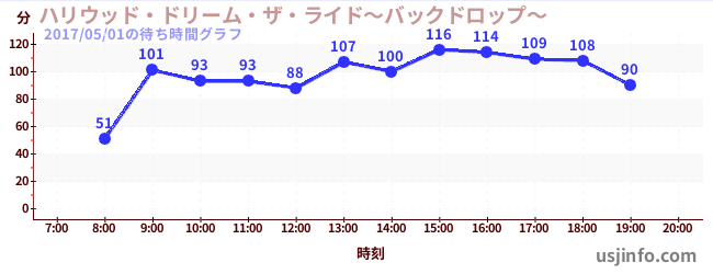 • ハリウッド・ドリーム・ザ・ライド〜バックドロップ〜$B$N(B2017年05月01日の待ち時間