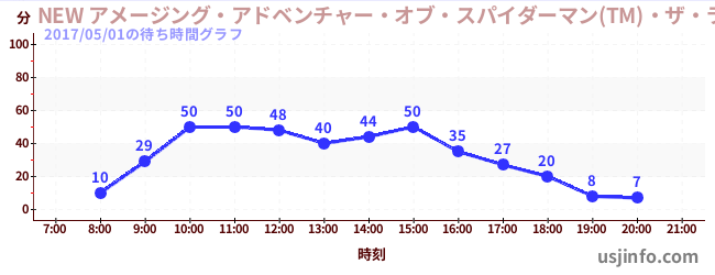 • NEW アメージング・アドベンチャー・オブ・スパイダーマン(TM)・ザ・ライド 4K3D$B$N(B2017年05月01日の待ち時間