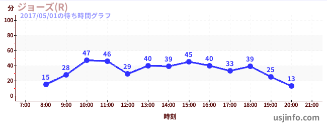• ジョーズ(R)$B$N(B2017年05月01日の待ち時間
