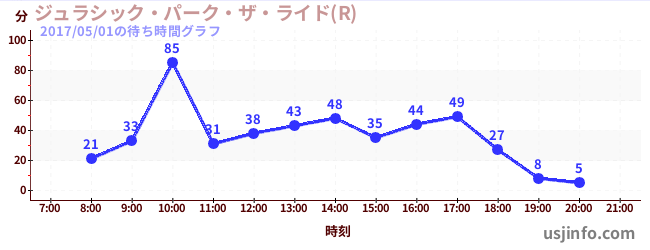 • ジュラシック・パーク・ザ・ライド(R)$B$N(B2017年05月01日の待ち時間