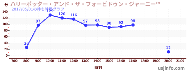 • ハリーポッター・アンド・ザ・フォービドゥン・ジャーニー™$B$N(B2017年05月01日の待ち時間