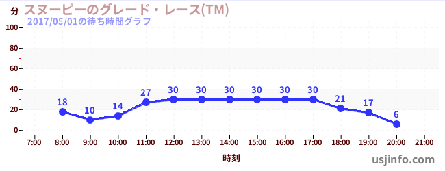 • スヌーピーのグレード・レース(TM)$B$N(B2017年05月01日の待ち時間