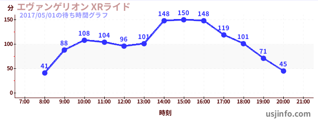 • エヴァンゲリオン XRライド$B$N(B2017年05月01日の待ち時間