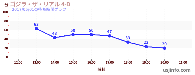 • ゴジラ・ザ・リアル 4-D$B$N(B2017年05月01日の待ち時間
