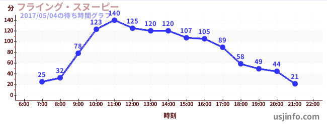 • フライング・スヌーピー$B$N(B2017年05月04日の待ち時間
