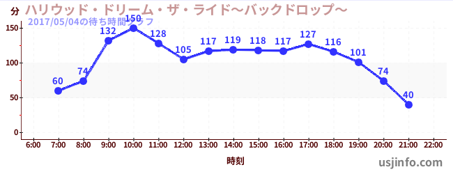 • ハリウッド・ドリーム・ザ・ライド〜バックドロップ〜$B$N(B2017年05月04日の待ち時間