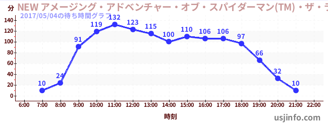 • NEW アメージング・アドベンチャー・オブ・スパイダーマン(TM)・ザ・ライド 4K3D$B$N(B2017年05月04日の待ち時間