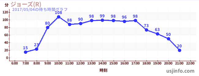 • ジョーズ(R)$B$N(B2017年05月04日の待ち時間