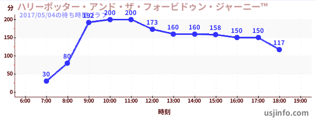 • ハリーポッター・アンド・ザ・フォービドゥン・ジャーニー™$B$N(B2017年05月04日の待ち時間