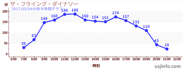 • ザ・フライング・ダイナソー$B$N(B2017年05月04日の待ち時間