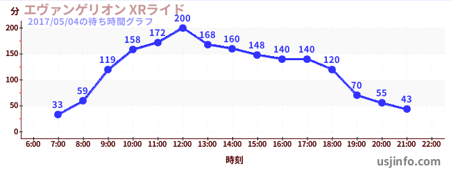 • エヴァンゲリオン XRライド$B$N(B2017年05月04日の待ち時間