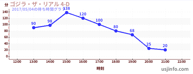 • ゴジラ・ザ・リアル 4-D$B$N(B2017年05月04日の待ち時間