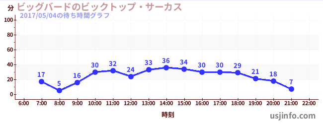 • ビッグバードのビックトップ・サーカス$B$N(B2017年05月04日の待ち時間