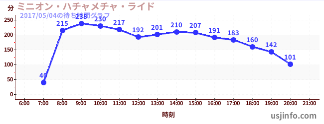 • ミニオン・ハチャメチャ・ライド$B$N(B2017年05月04日の待ち時間