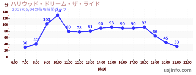 • ハリウッド・ドリーム・ザ・ライド$B$N(B2017年05月04日の待ち時間