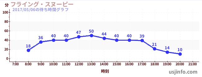 • フライング・スヌーピー$B$N(B2017年05月06日の待ち時間