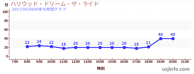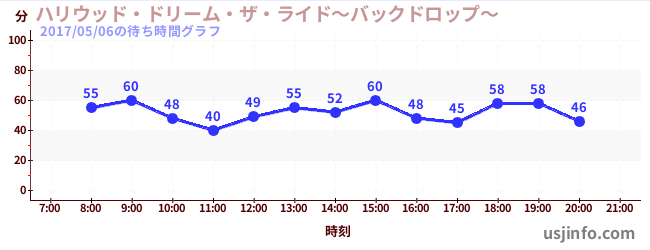 • ハリウッド・ドリーム・ザ・ライド〜バックドロップ〜$B$N(B2017年05月06日の待ち時間