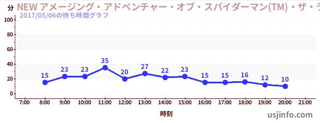 • NEW アメージング・アドベンチャー・オブ・スパイダーマン(TM)・ザ・ライド 4K3D$B$N(B2017年05月06日の待ち時間